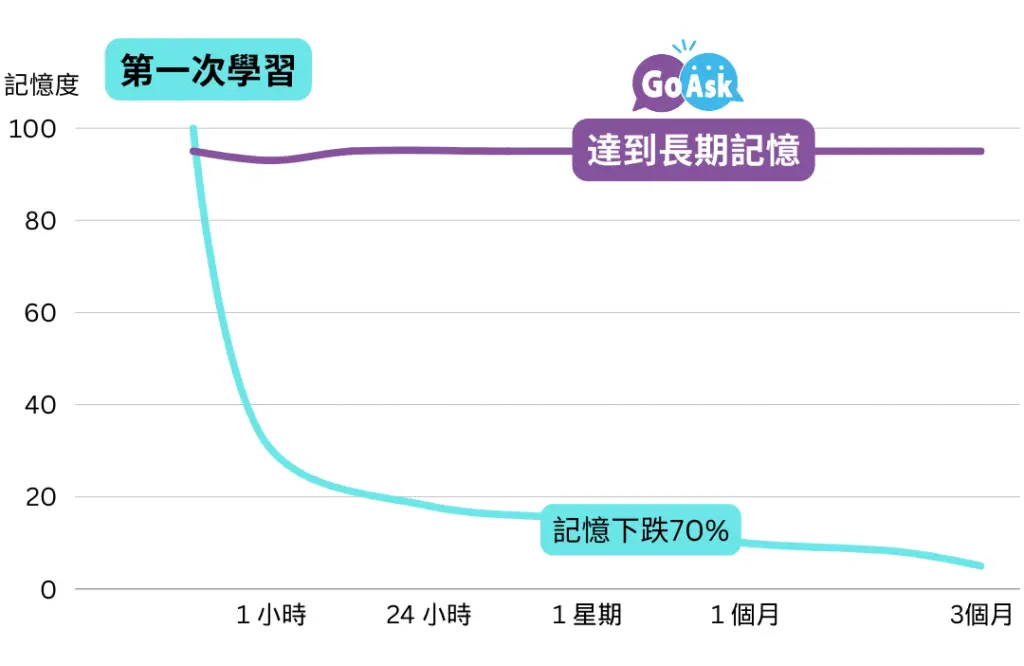 GoAsk根據記憶科學設計,幫你小朋友用最啱嘅節奏學習,真正「學到入腦」,唔再學完就唔記得。