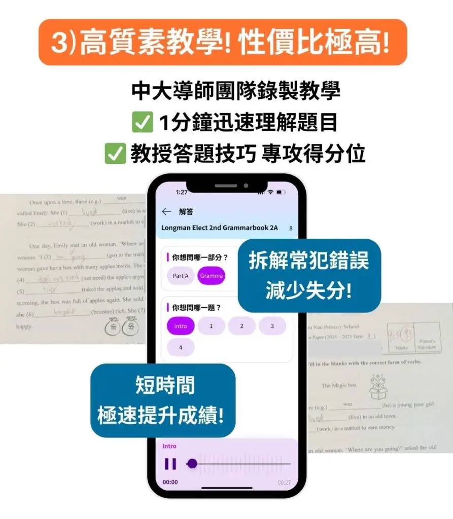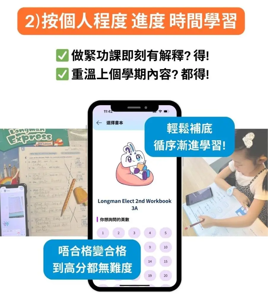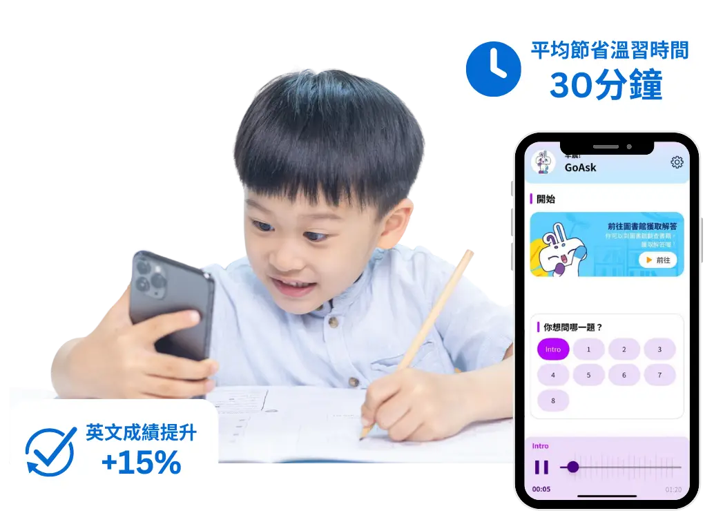 GoAsk 係小學生嘅學習夥伴,邊做功課邊溫習,即時掌握重點,減少無效忙碌,慳時間又有效。有補習都啱用,冇補習更加要用!